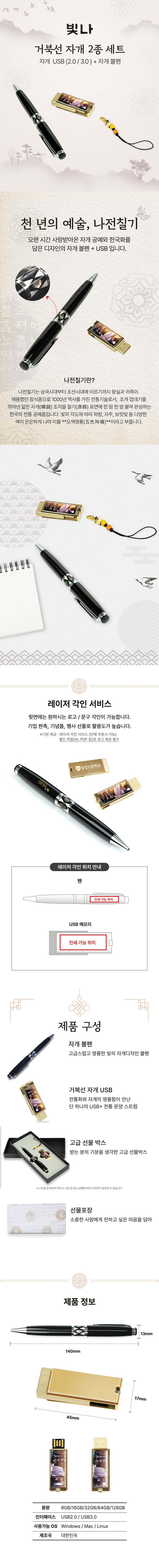 • 빛나 거북선 2종세트 (자개볼펜+USB메모리 USB2.0 8GB~64GB)