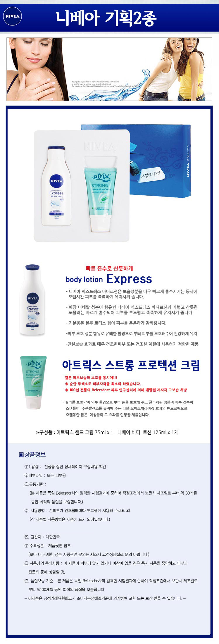 • 니베아 기획 2종 (니베아 바디크림 125ml + 아트릭스 핸드크림 75ml)