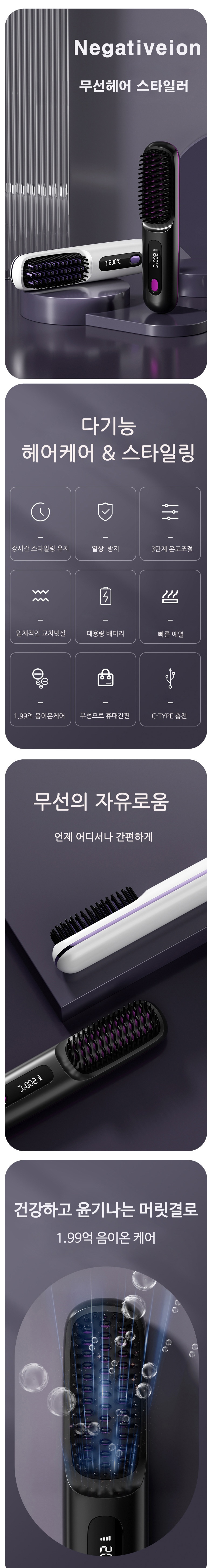 • 무선 헤어 빗 고대기(파우치&집게핀2p&꼬리빗)