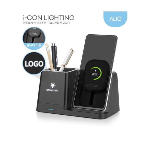 • ALIO LED로고 펜꽂이형 아이콘라이팅 15W 고속무선충전기