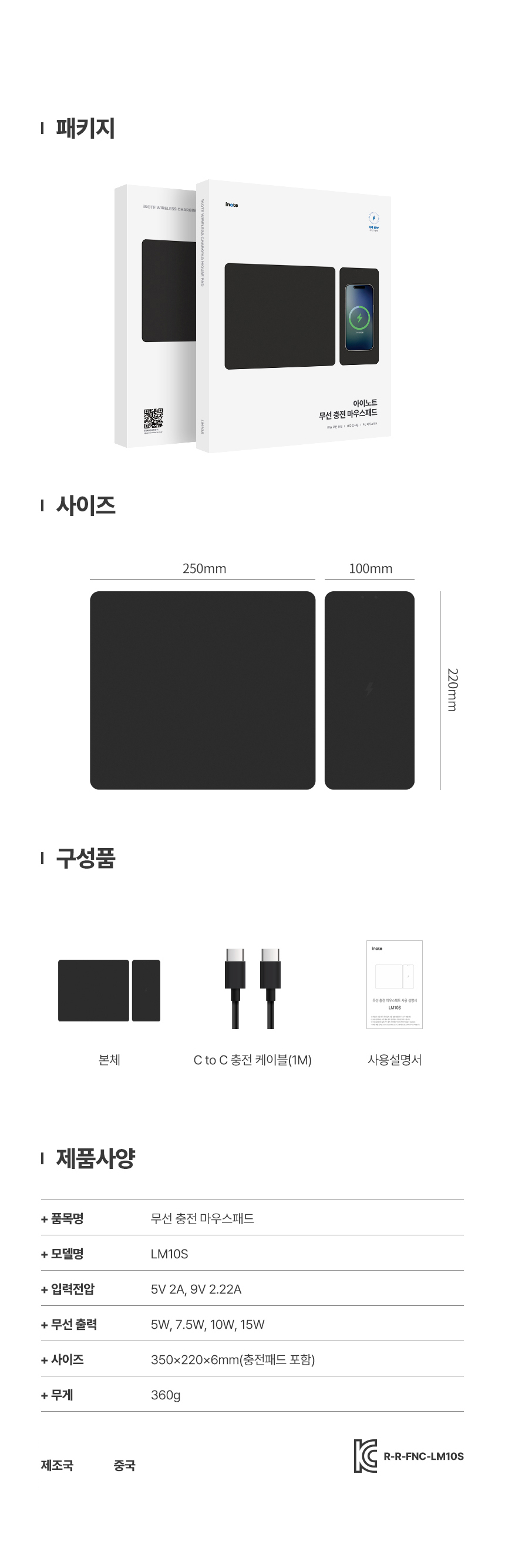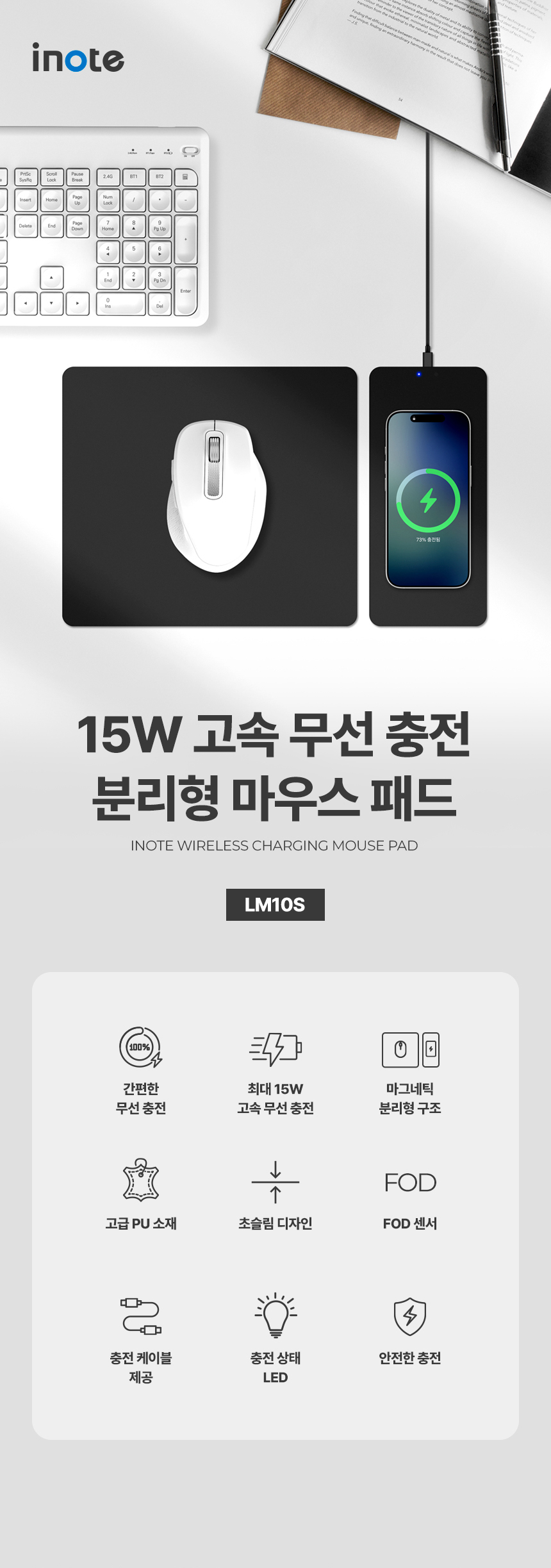 • 15W 고속 무선 충전 분리형 마우스 패드 LM10S