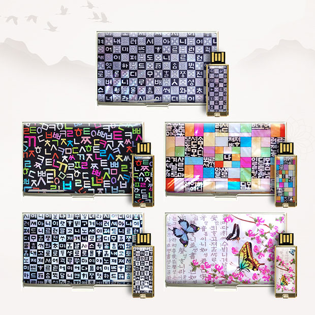 • 빛나 훈민한글 시리즈 자개 2종세트 (명함케이스+USB메모리) (USB2.0) 4GB~128GB