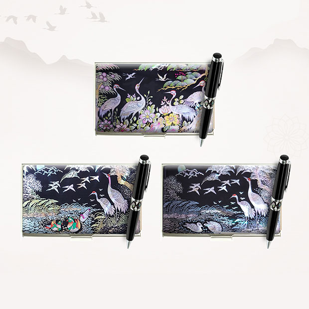 • 빛나 학 시리즈 자개 2종세트 (자개명함케이스+자개볼펜)
