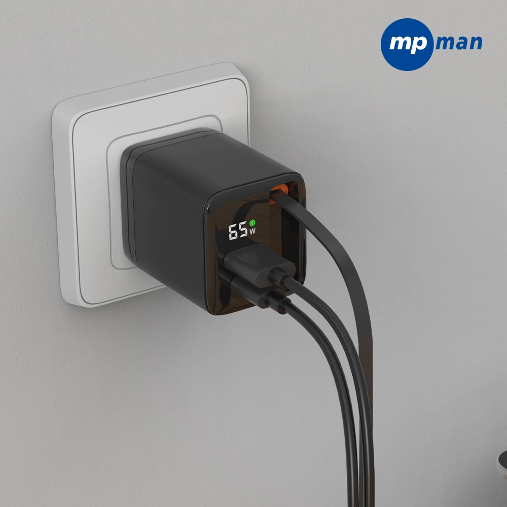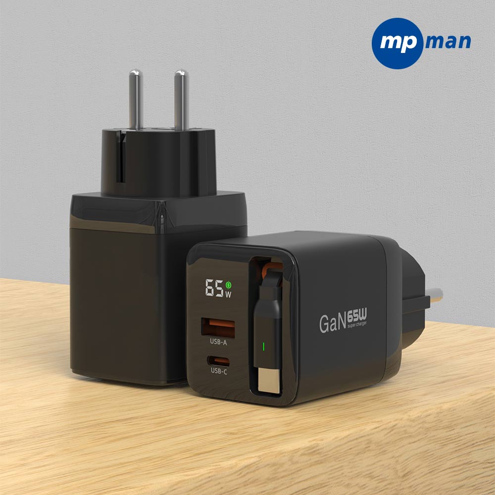 • 엠피맨 65W GaN 디스플레이 릴 케이블 일체형 2포트 접지 고속 충전기