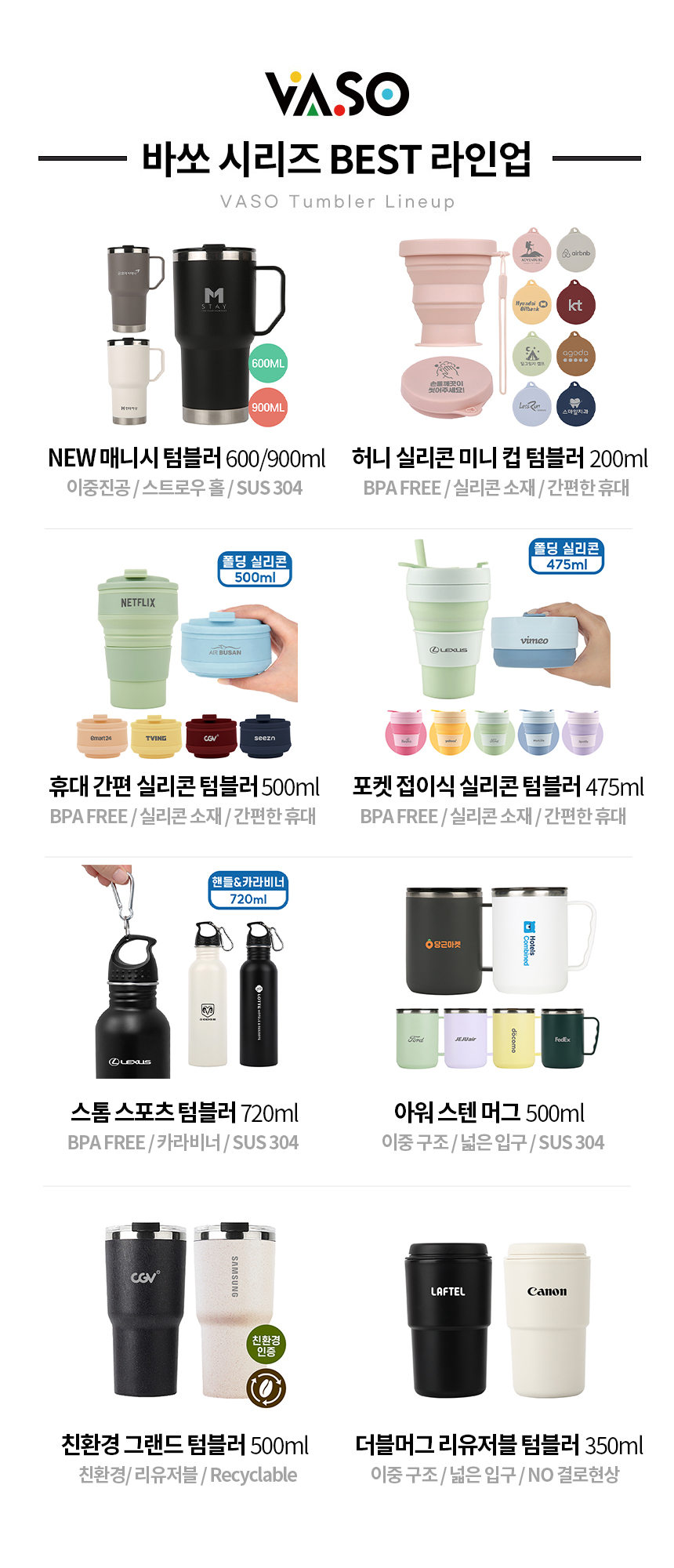 • [바쏘] 메탈 핸들 진공 텀블러 500ml