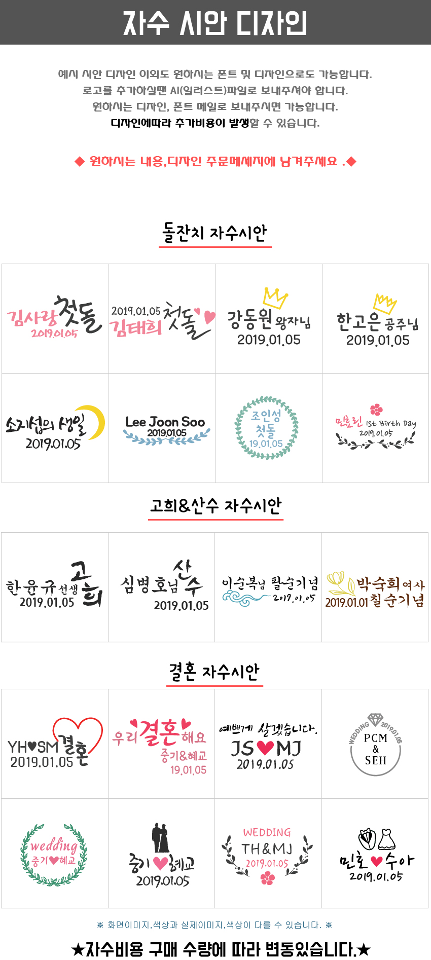 • 국내택배 배송비는 무료배송을 원칙으로 하나 제작상품에 따라 상이하게 적용될 수 있습니다.