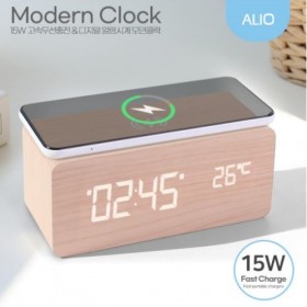 ALIO 모던클락 15W 우드형 LED시계&고속무선충전기