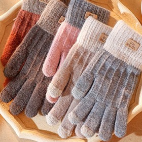 스마트터치 투톤라벨 니트장갑 여성용 방한장갑 기모안감 털장갑 손가락장갑