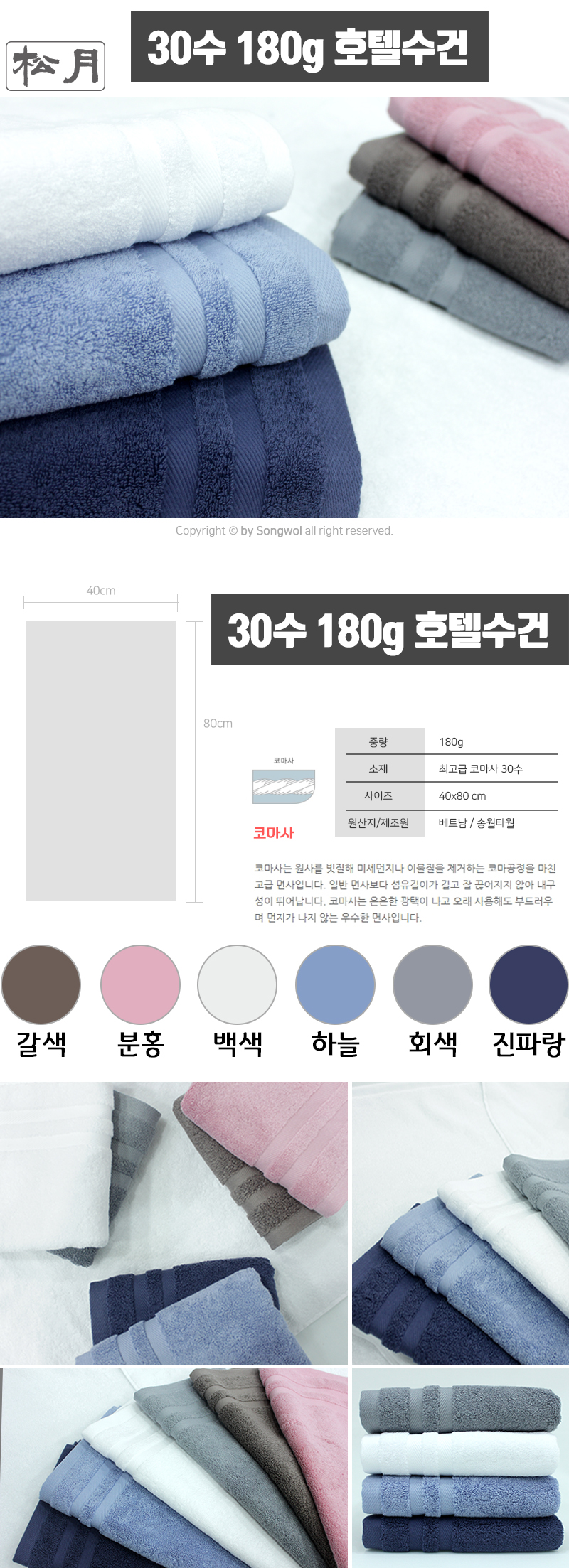 • 송월타올 30수 180g 호텔수건 더블라인