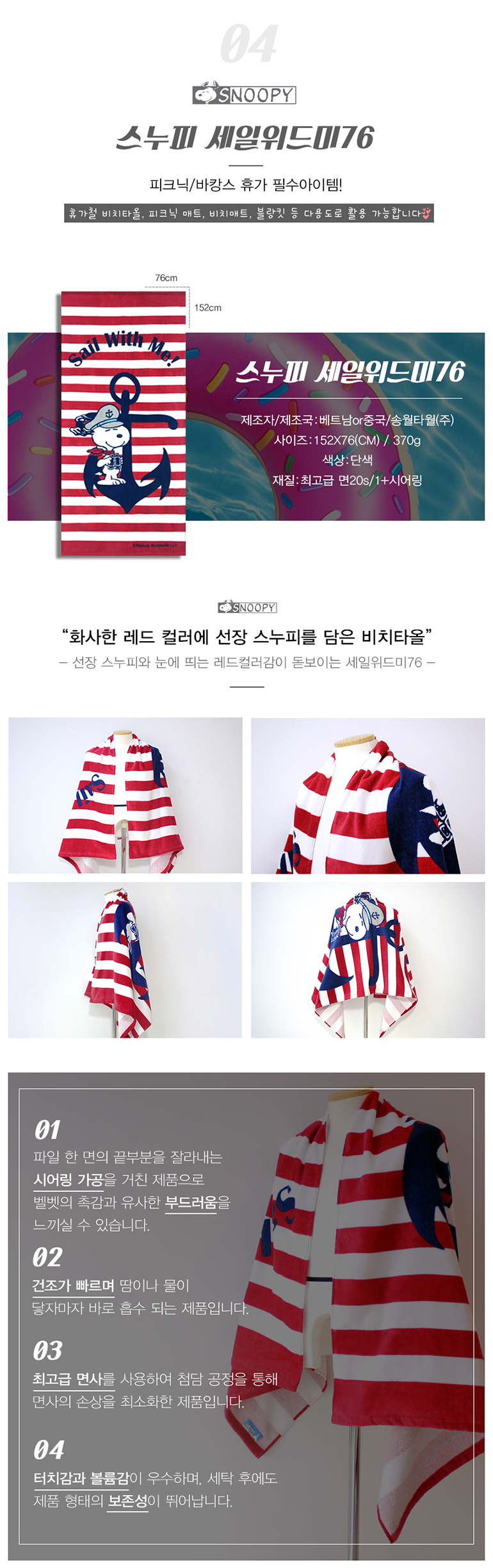 • 송월 대형 스누피 세일위드미 비치타올