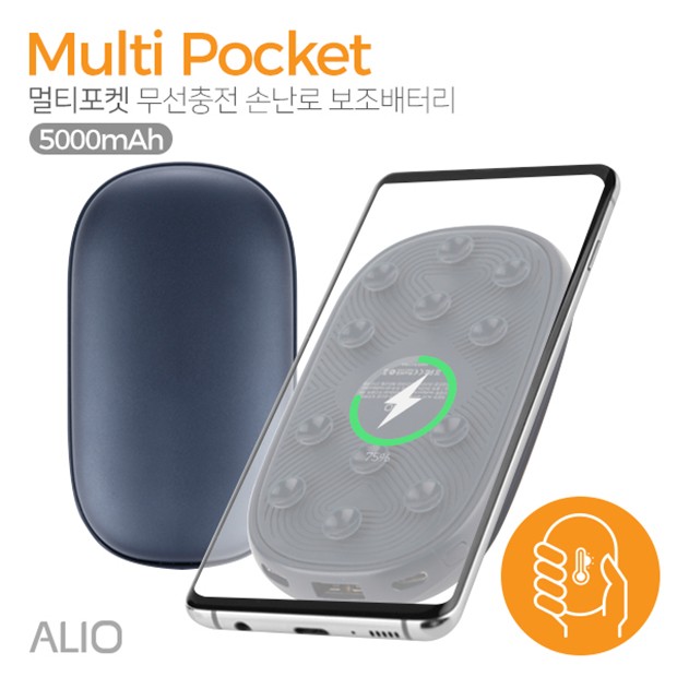 • ALIO 무선충전겸용 멀티포켓 5000mAh 손난로보조배터리