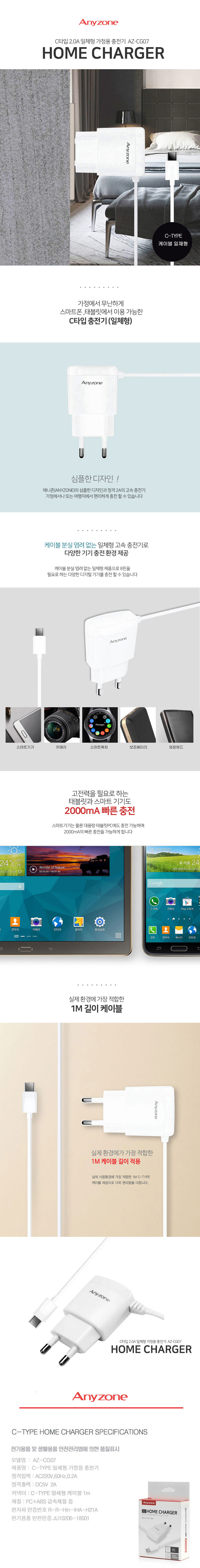 • C타입 2.0A 일체형 가정용 충전기 AZ-CG07