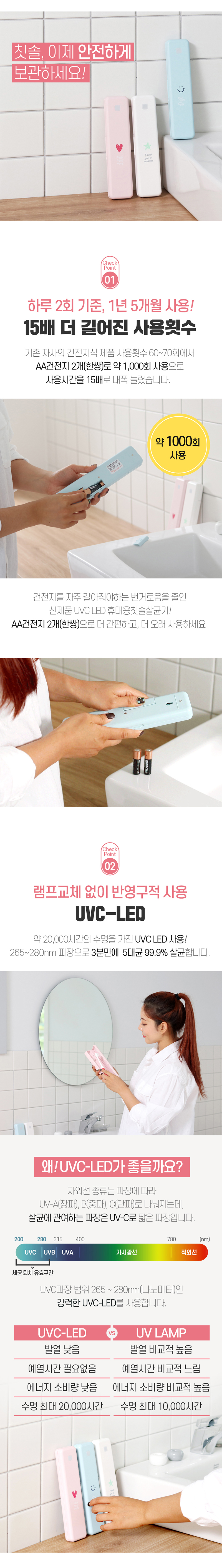 1회 작동 3분 99.9% 살균 / AA건전지 2개로 약 1000회 이상 사용