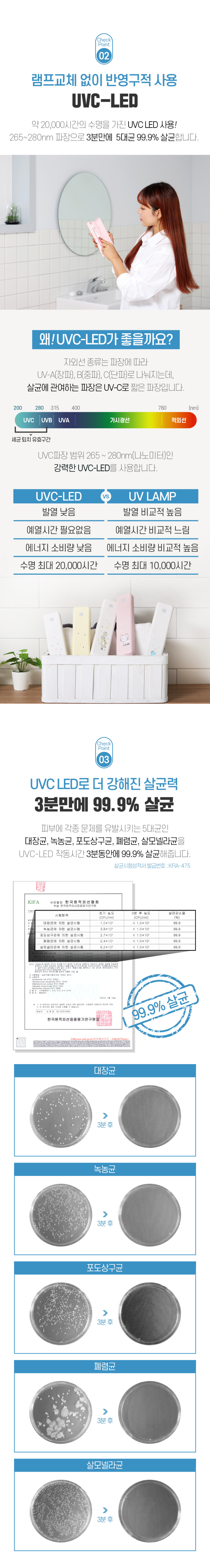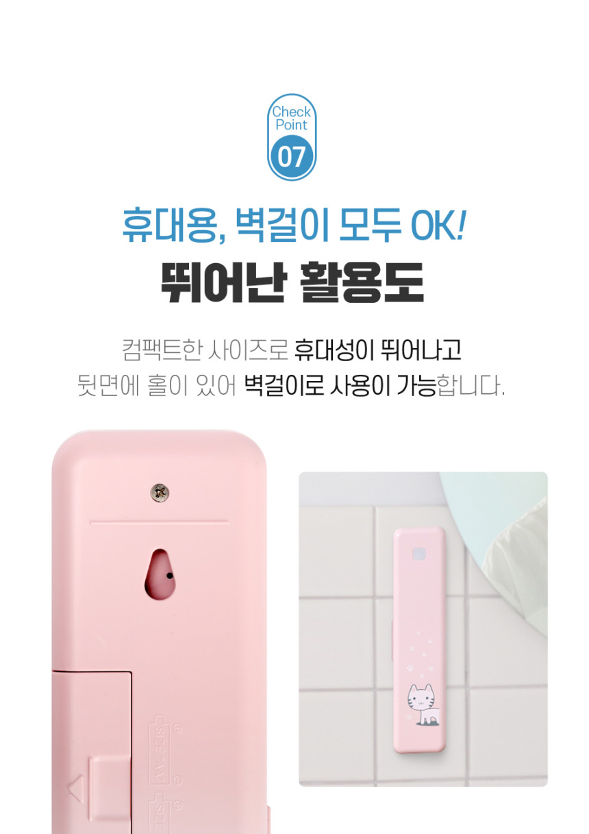 1회 작동 3분 99.9% 살균 / AA건전지 2개로 약 1000회 이상 사용