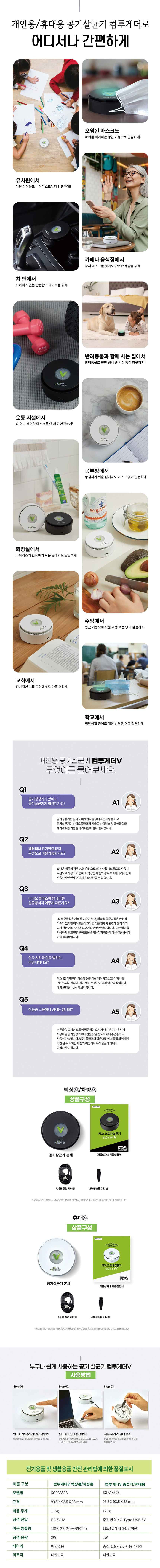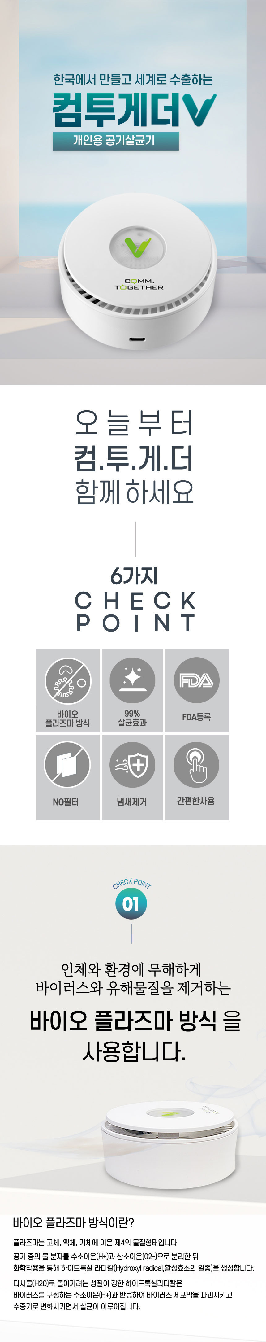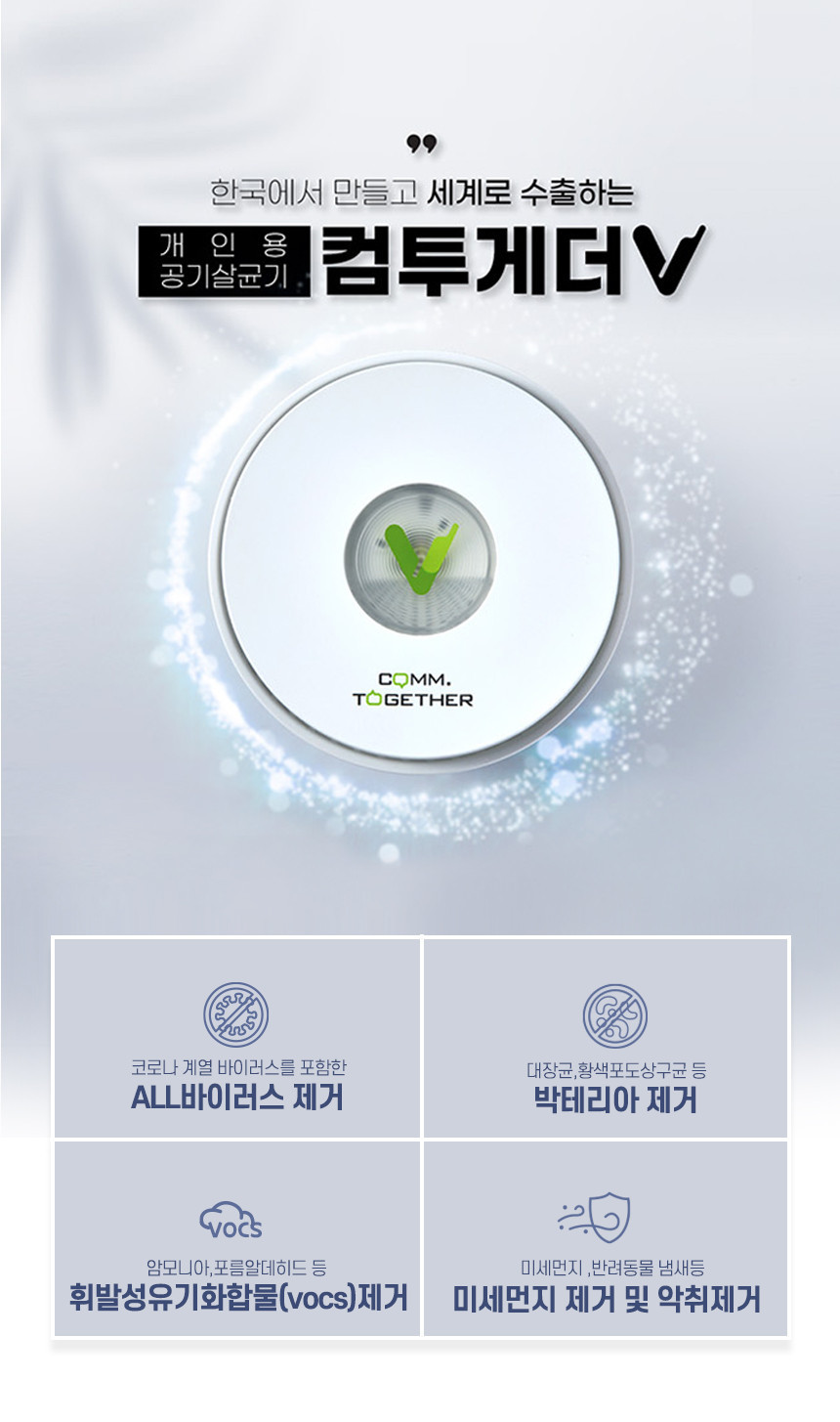 • 컴투게더V 바이오 플라즈마 휴대용 공기 청정기 살균기 블랙색상