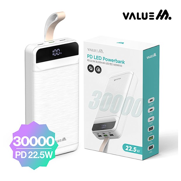 • 밸류엠 대용량 PD 22.5W LED 보조배터리 30000mAh