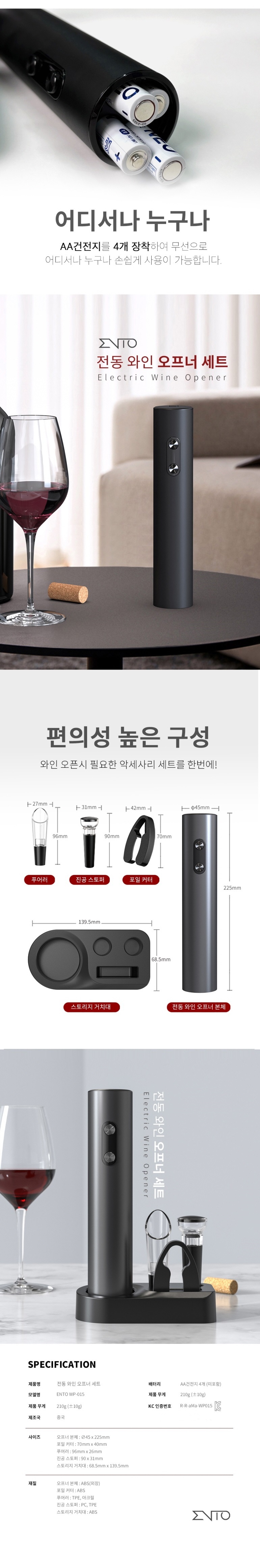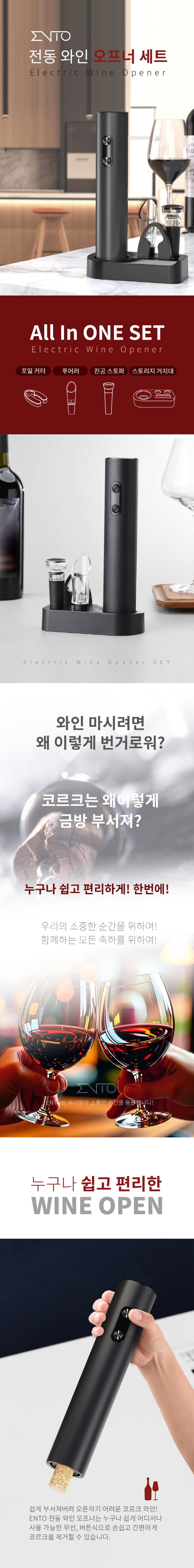• [엔토] 프리미엄 5in1 전동 와인오프너 풀세트 (포일커터, 푸어러, 진공스토퍼, 스토리지 거치대, 와인 오프너)[인쇄무료]
