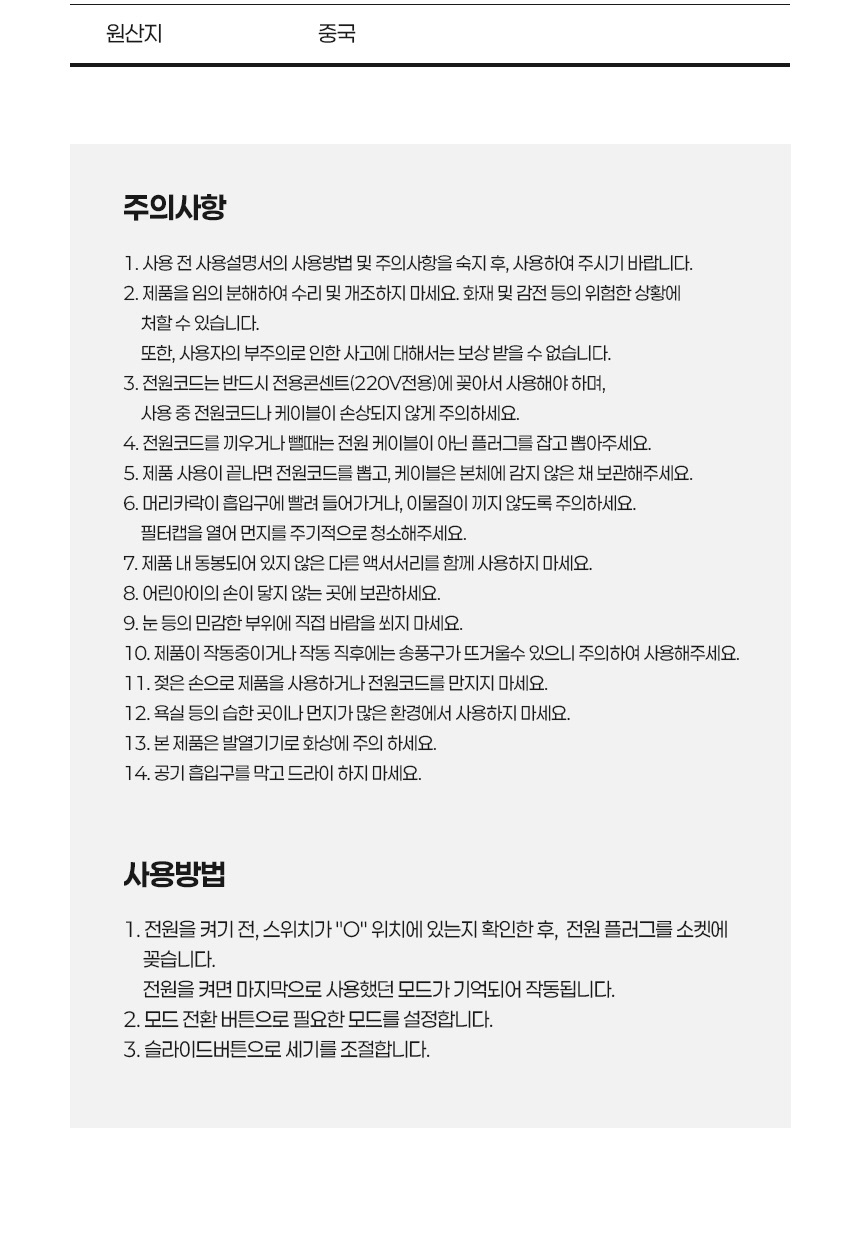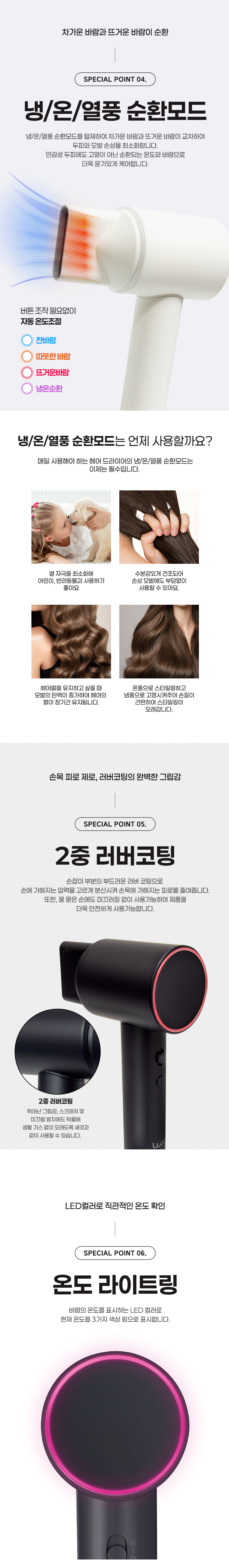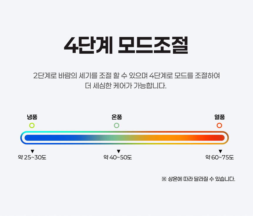 * 4단계 모드조절로 헤어큐티클 및 두피 보호
