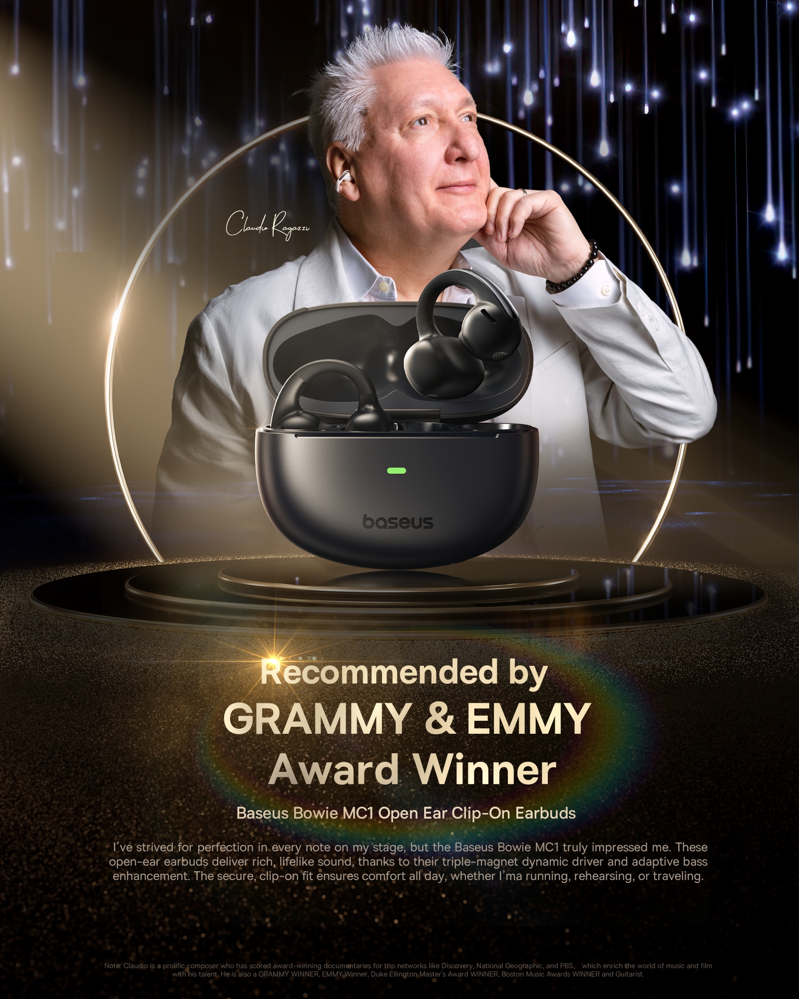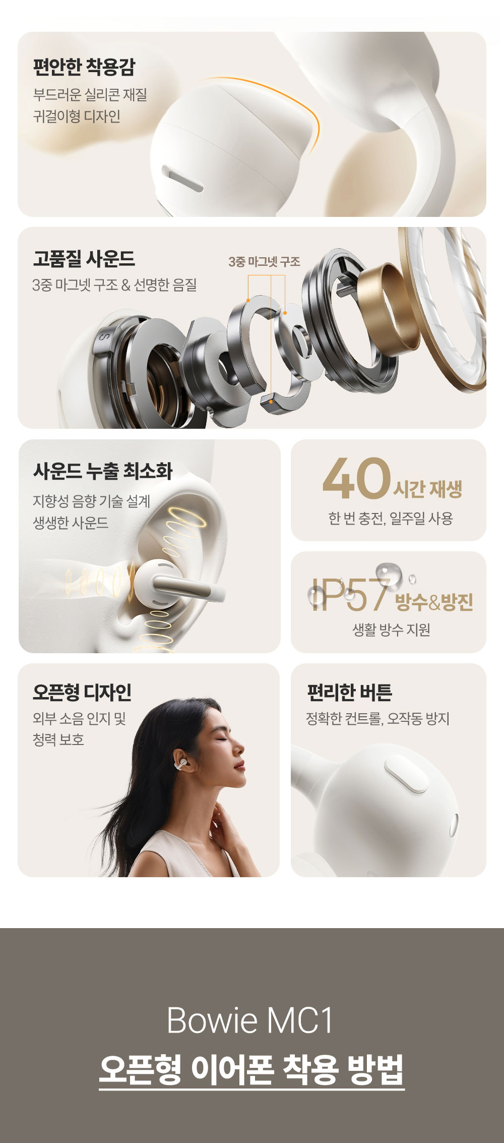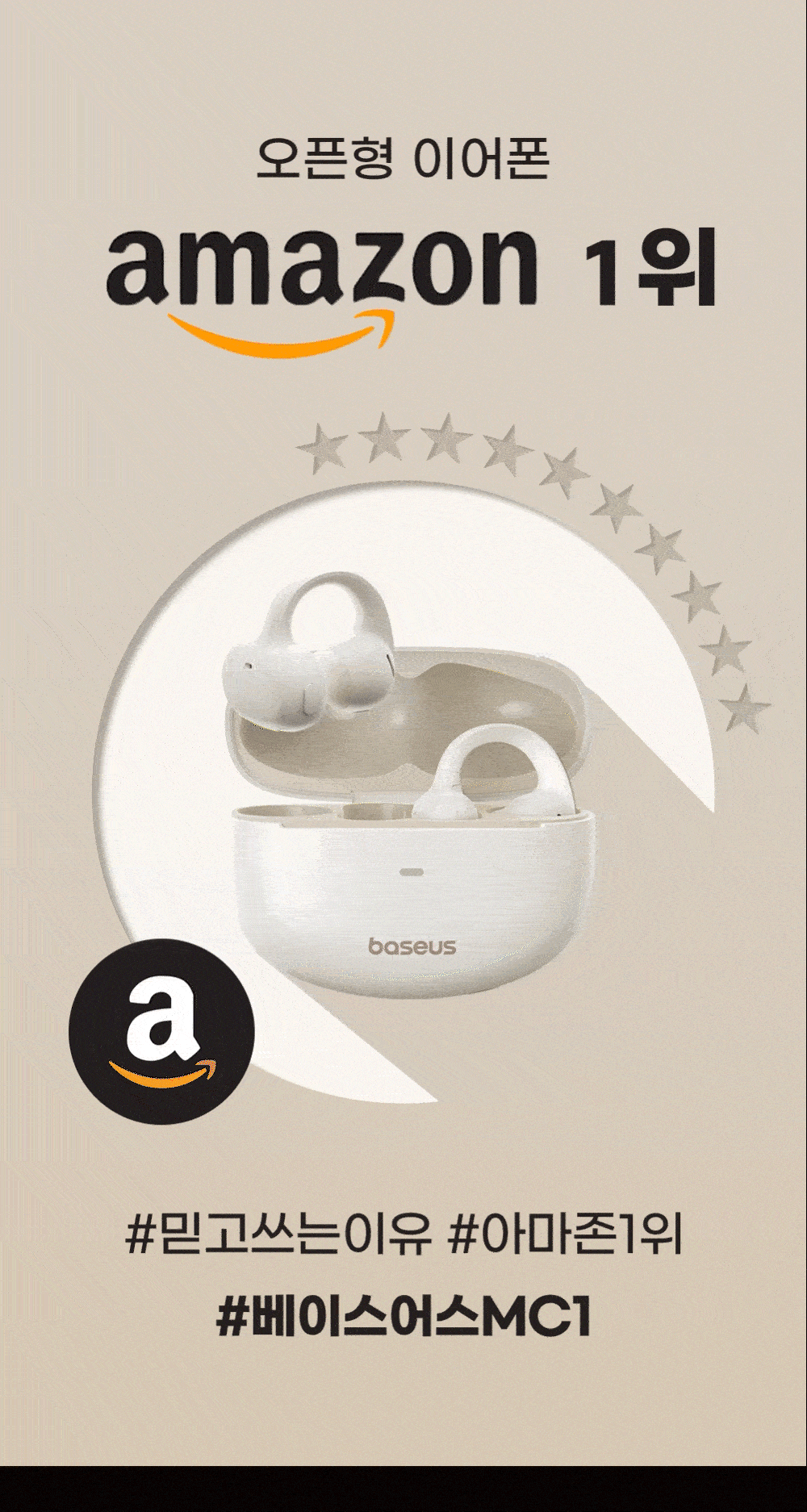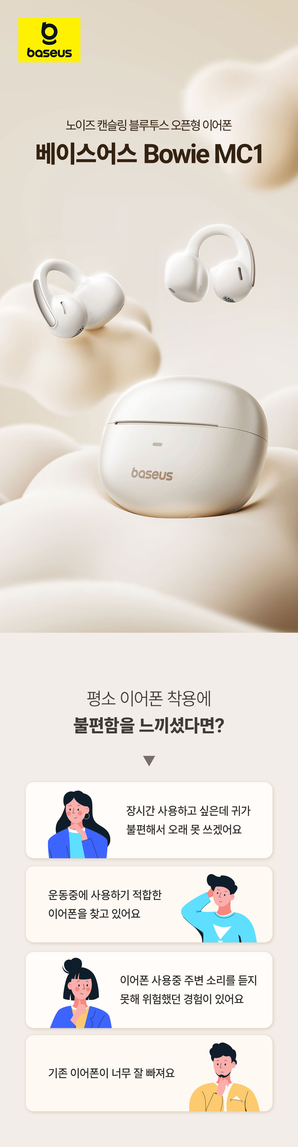 •  베이스어스 블루투스 이어폰 무선 오픈 클립형 형 귀걸이형 MC1 블랙