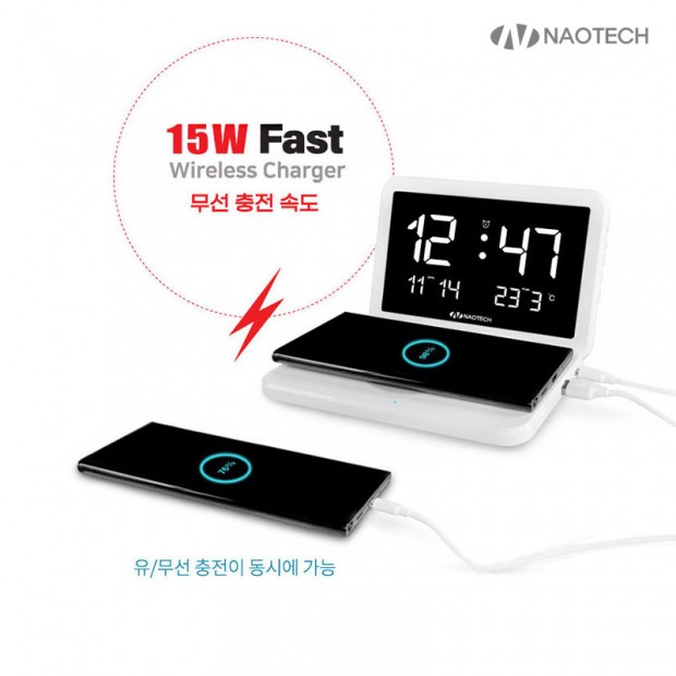 • 나오 15W 무선충전 디지털 알람시계  NAO-L4700C