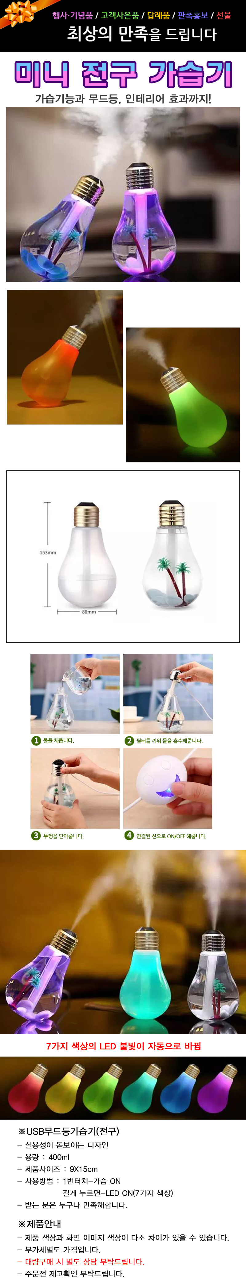 • KC인증 USB무드등가습기(전구)-고품질
