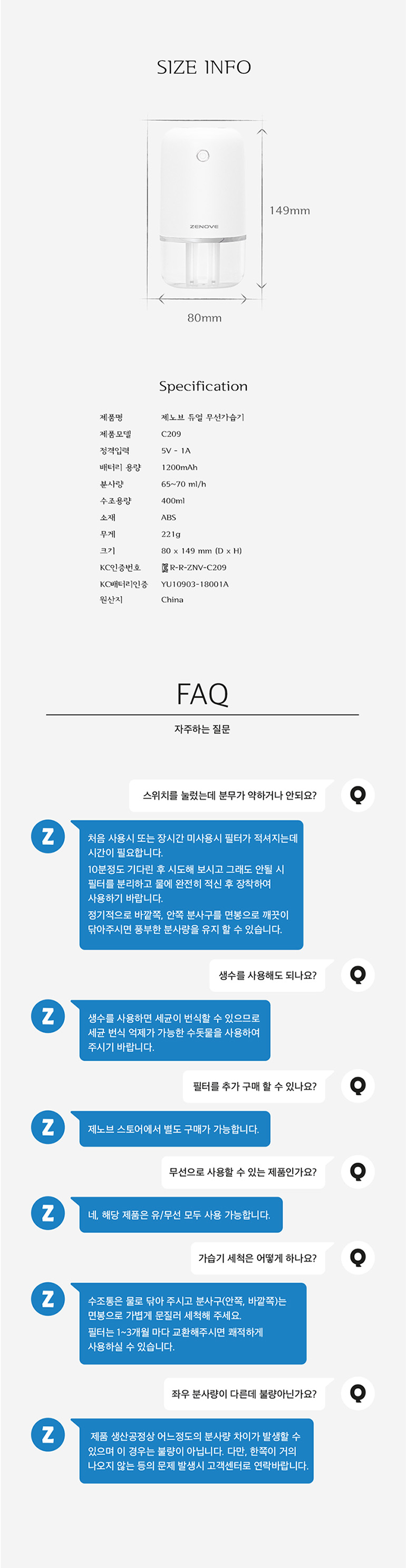 무선가습기, 필터 4개, Type-C 충전선, 사용설명서
