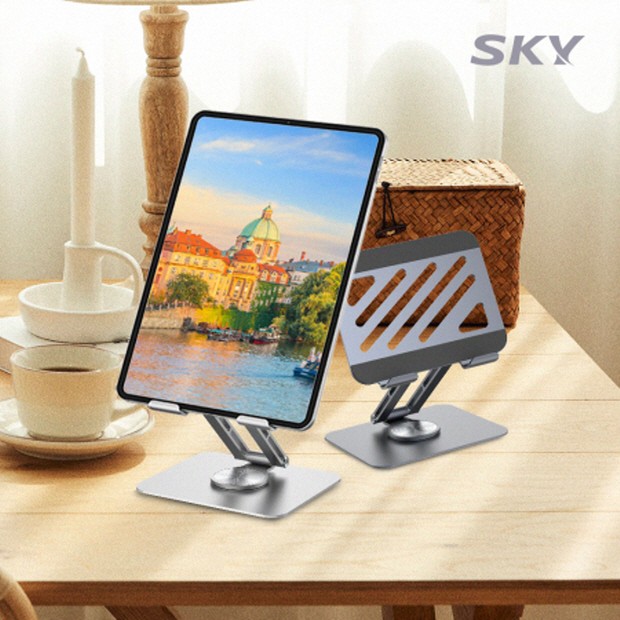 • 스카이 웰 솔리드 ES40XS 탁상용 알루미늄 접이식 핸드폰 태블릿 겸용 360도 회전 거치대