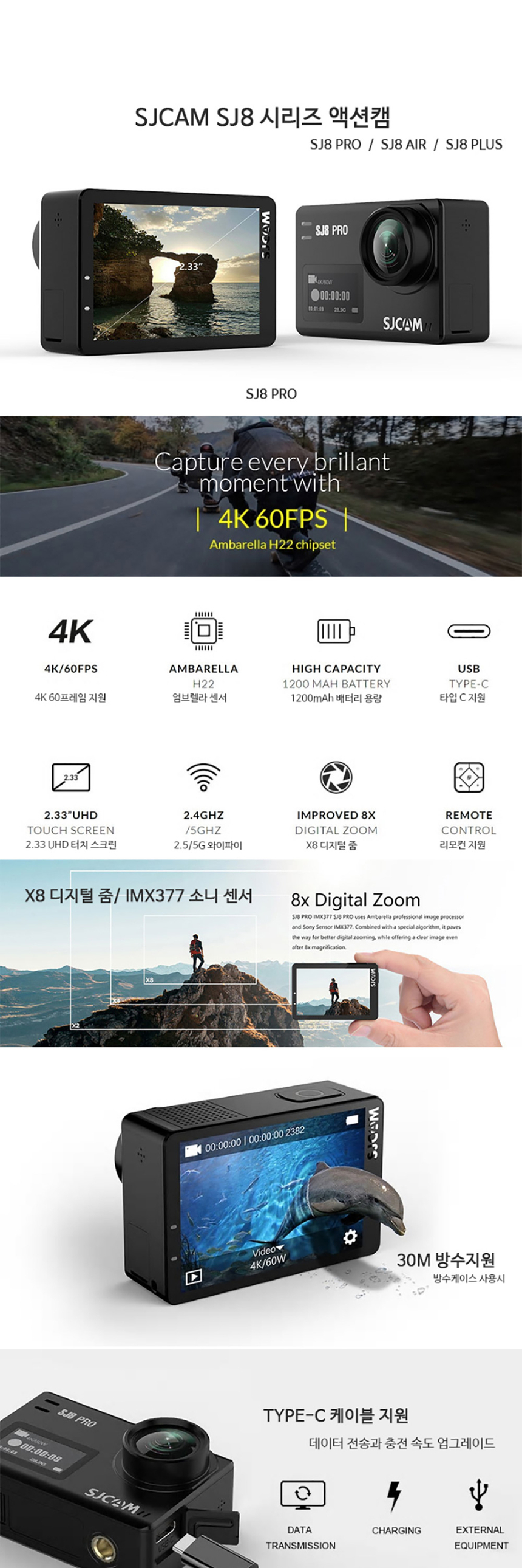 • SJCAM SJ8 PRO 4K 액션캠 풀박스