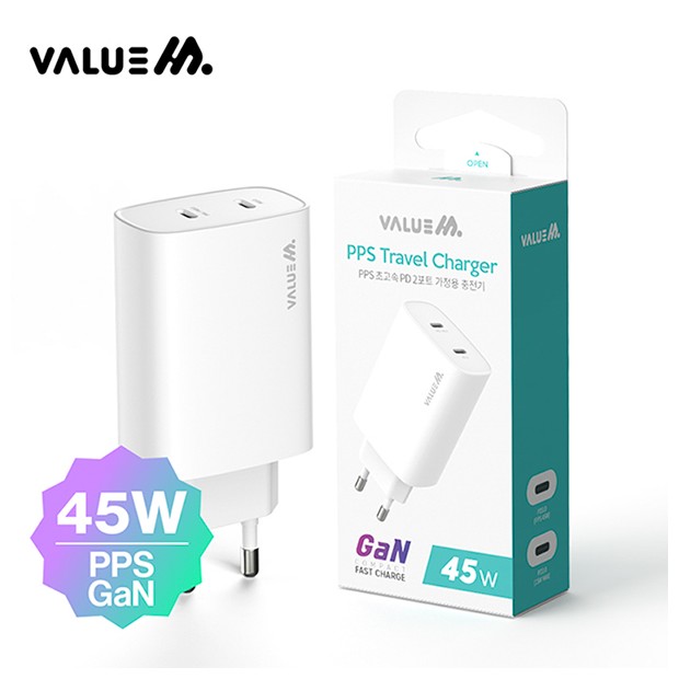 • 밸류엠 가정용 45W(PD3.0+PD3.0) 2포트 GaN PPS 초고속 충전기(케이블 미포)