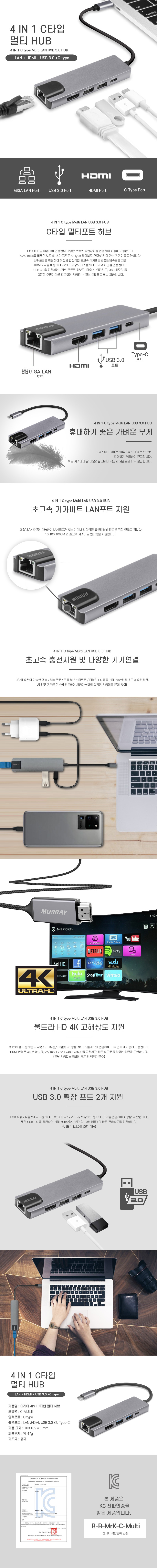• 머레이 C-TYPE 멀티허브 젠더 LAN USB HDMI C-MULTI