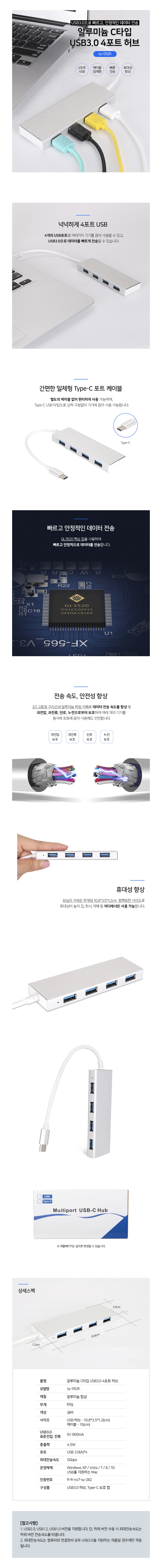 • 고강도 알루미늄 C타입 USB 3.0 4포트 허브