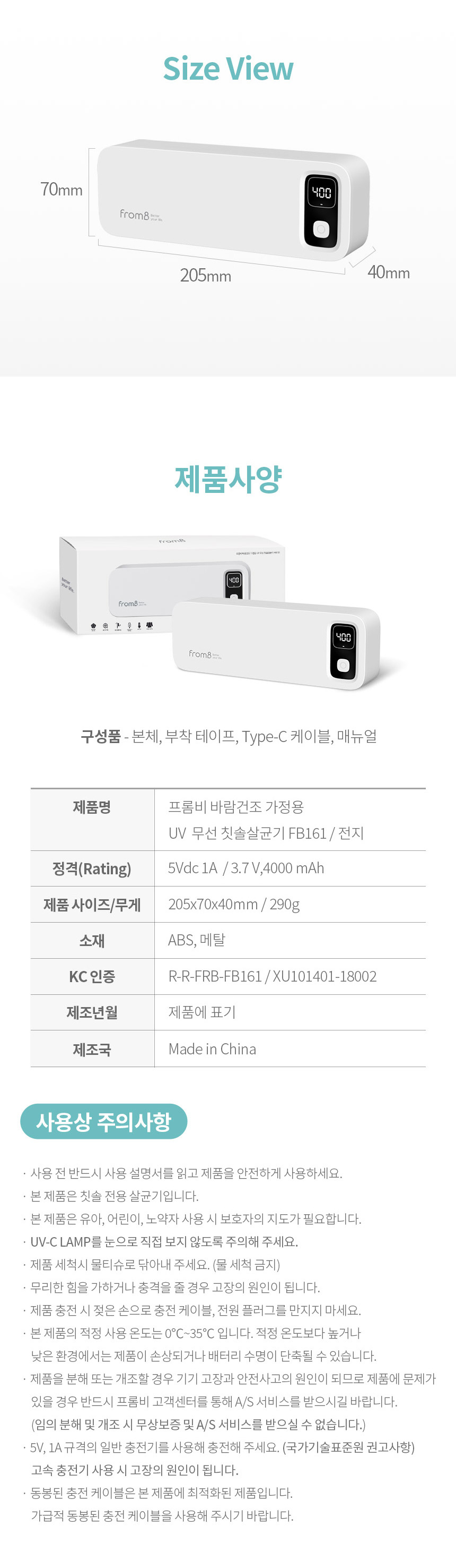 • 프롬비 바람건조 가정용 UV 무선 칫솔살균기