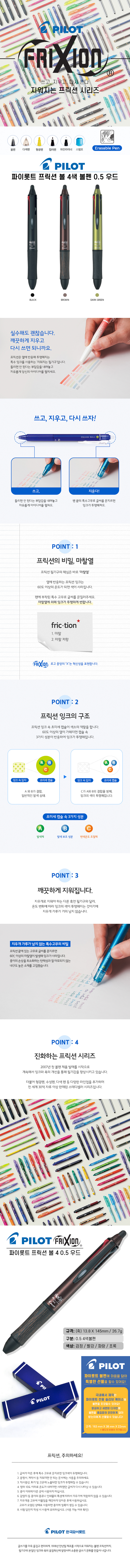 • 파이롯트 지워지는 프릭션 우드 4색볼펜 0.5