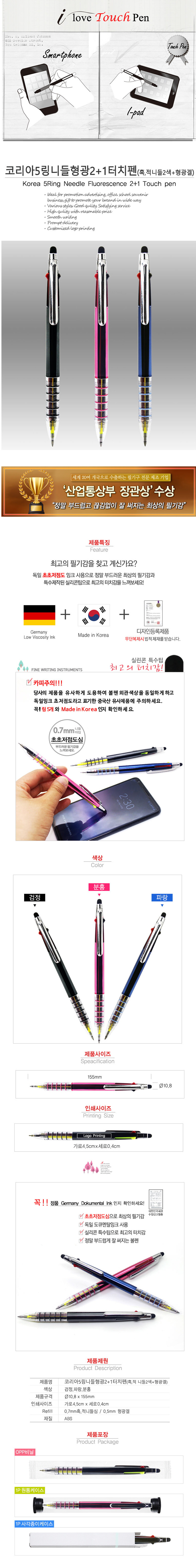 • 코리아5링니들형광2+1터치펜 흑,적니들2색+형광겔