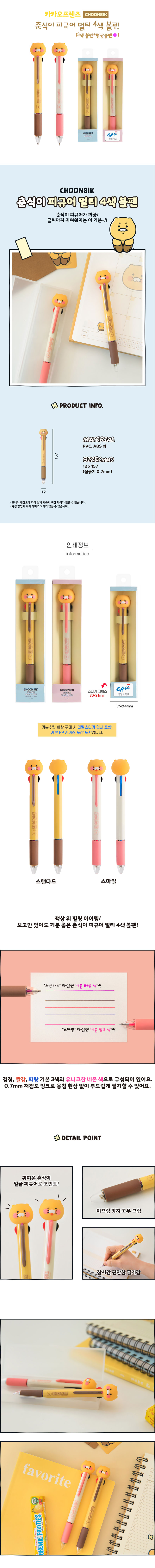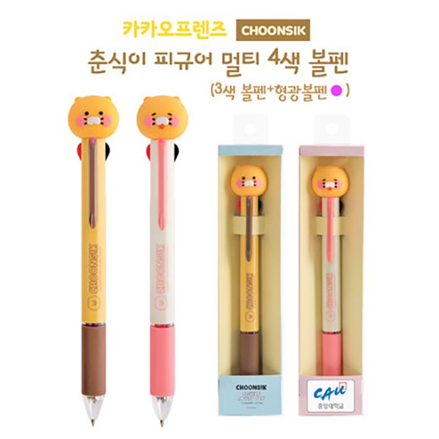 • [카카오프렌즈] 춘식이 피규어 멀티 4색 볼펜 (3색볼펜+형광볼펜)