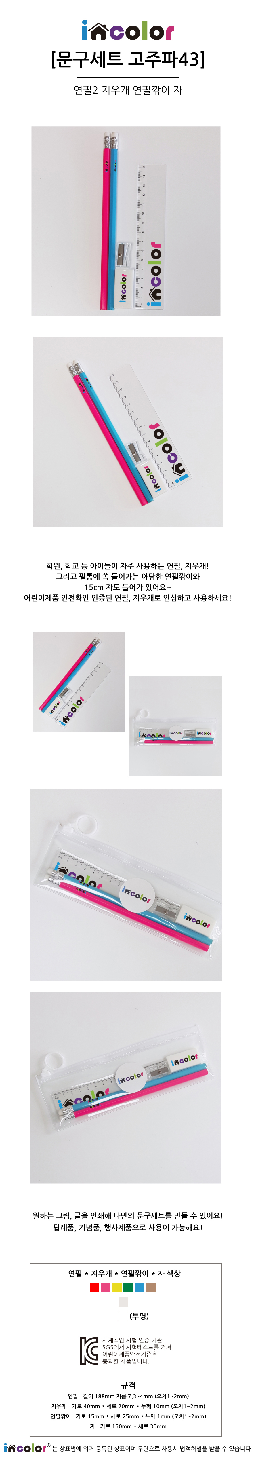 • incolor문구세트 고주파43 (연필 지우개 깎이 자)