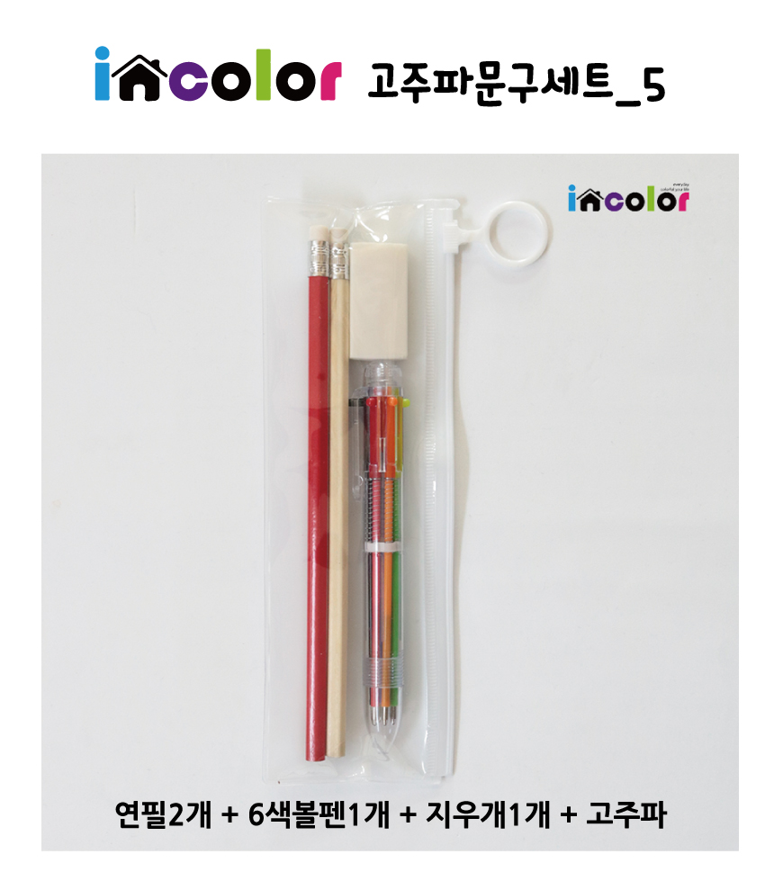 • incolor 고주파 문구세트(연필,6색볼펜,지우개)