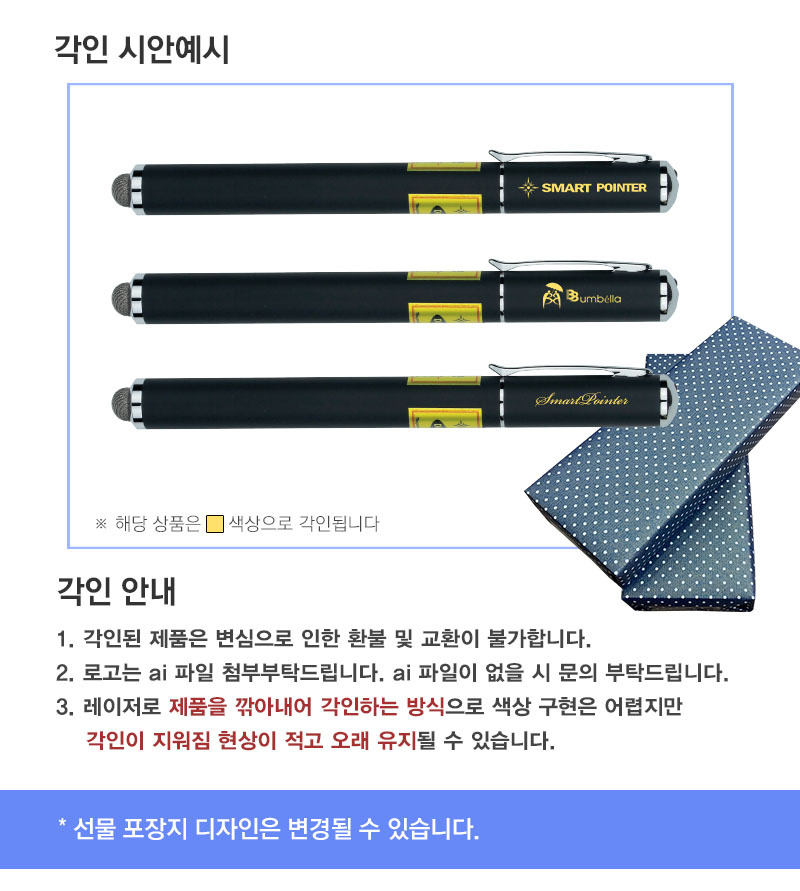 • 국내택배 배송비는 무료배송을 원칙으로 하나 제작상품에 따라 상이하게 적용될 수 있습니다.