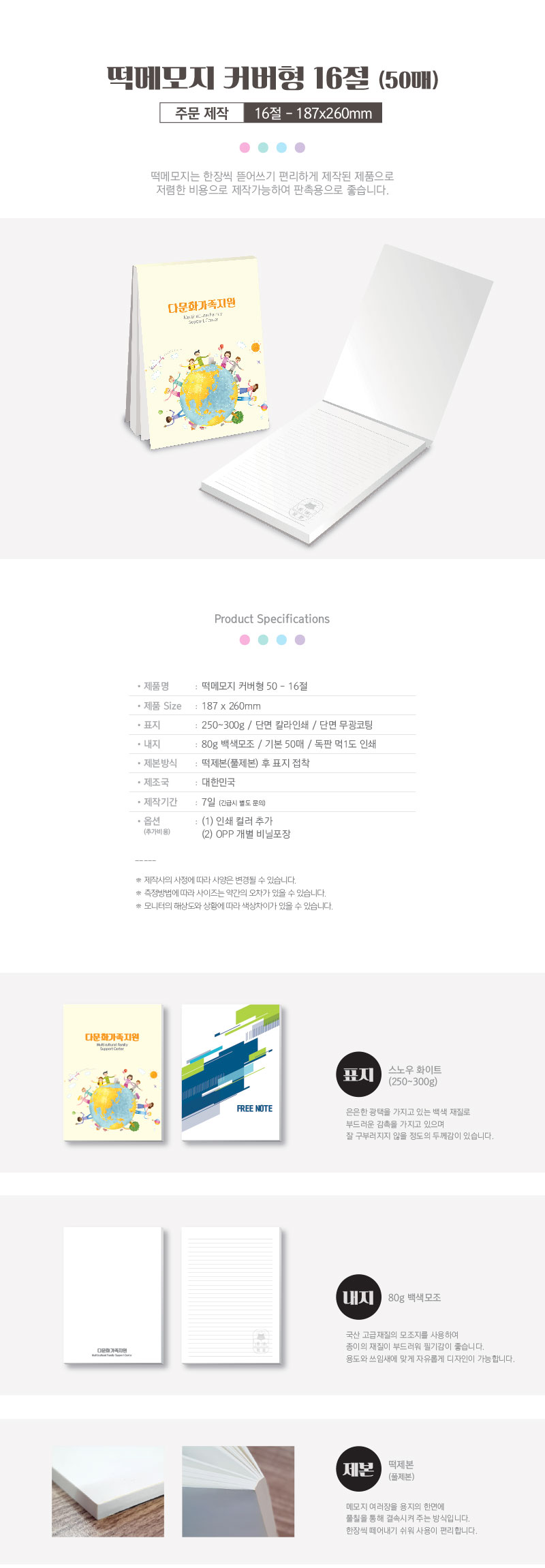 • [주문제작] 떡메모지 커버형 16절 (187*260mm/B5/50매)