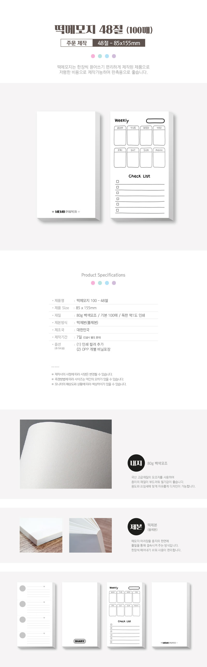 • [주문제작] 떡메모지 48절 (85*155mm/100매)