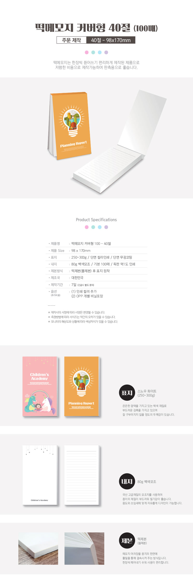 • [주문제작] 떡메모지 커버형 40절 (98*170mm/100매)