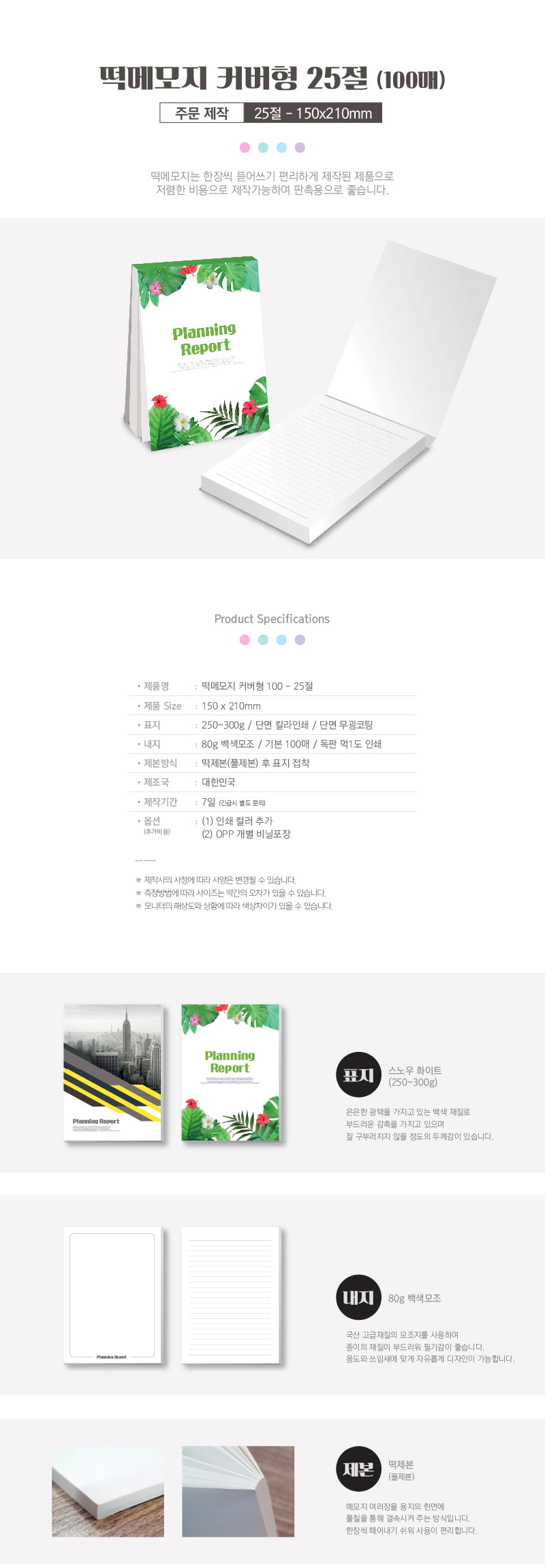 • [주문제작] 떡메모지 커버형 25절 (150*210mm/A5/100매)
