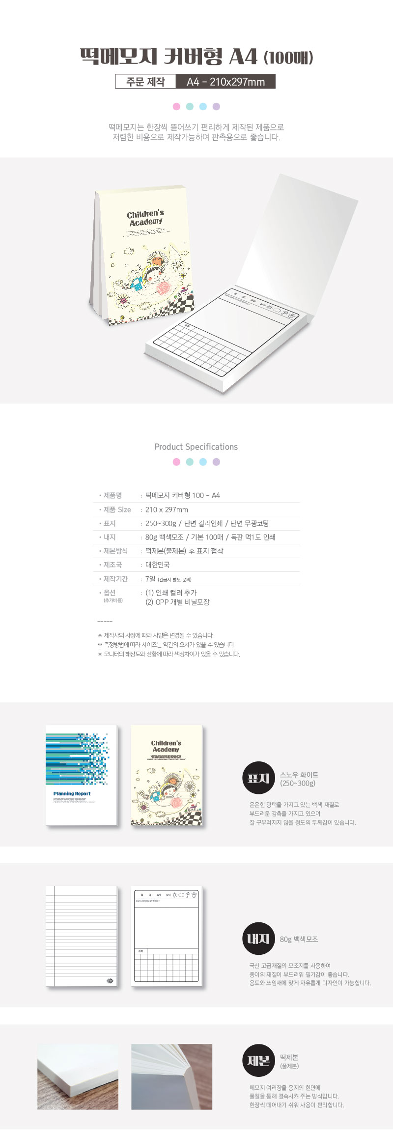 • [주문제작] 떡메모지 커버형 A4 (210*297mm/100매)
