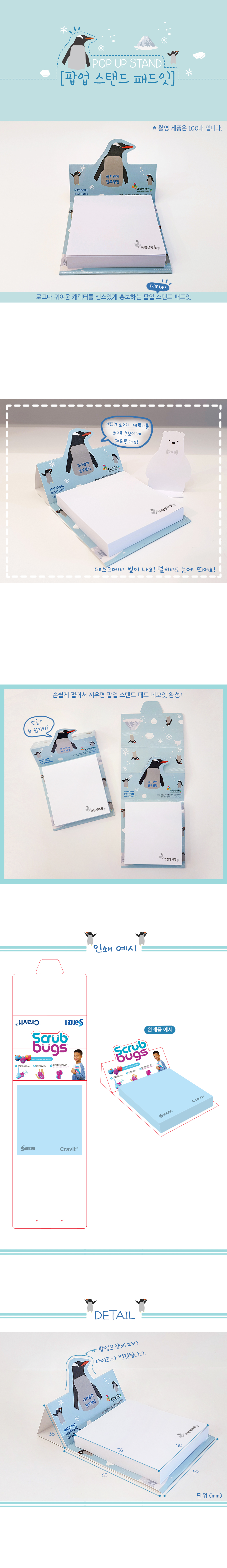 팝업스탠드패드 (50매,100매선택사항) / 표지칼라인쇄, 내지분홍, 노랑, 연두, 하늘, 흰색