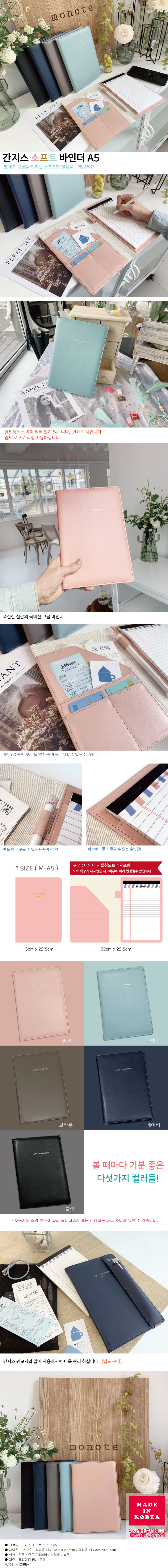 가죽 바인더 + 절취노트 1권 / 핑크/민트/브라운/네이비/블랙