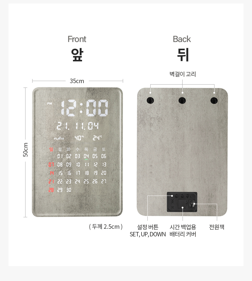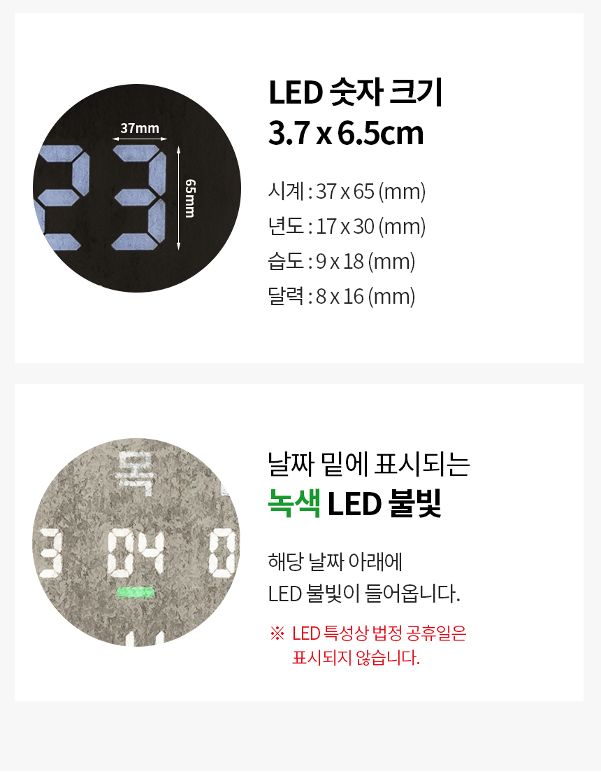 • 대형 LED 전자 달력 벽시계 35cm 고급형 개업 축하 선물