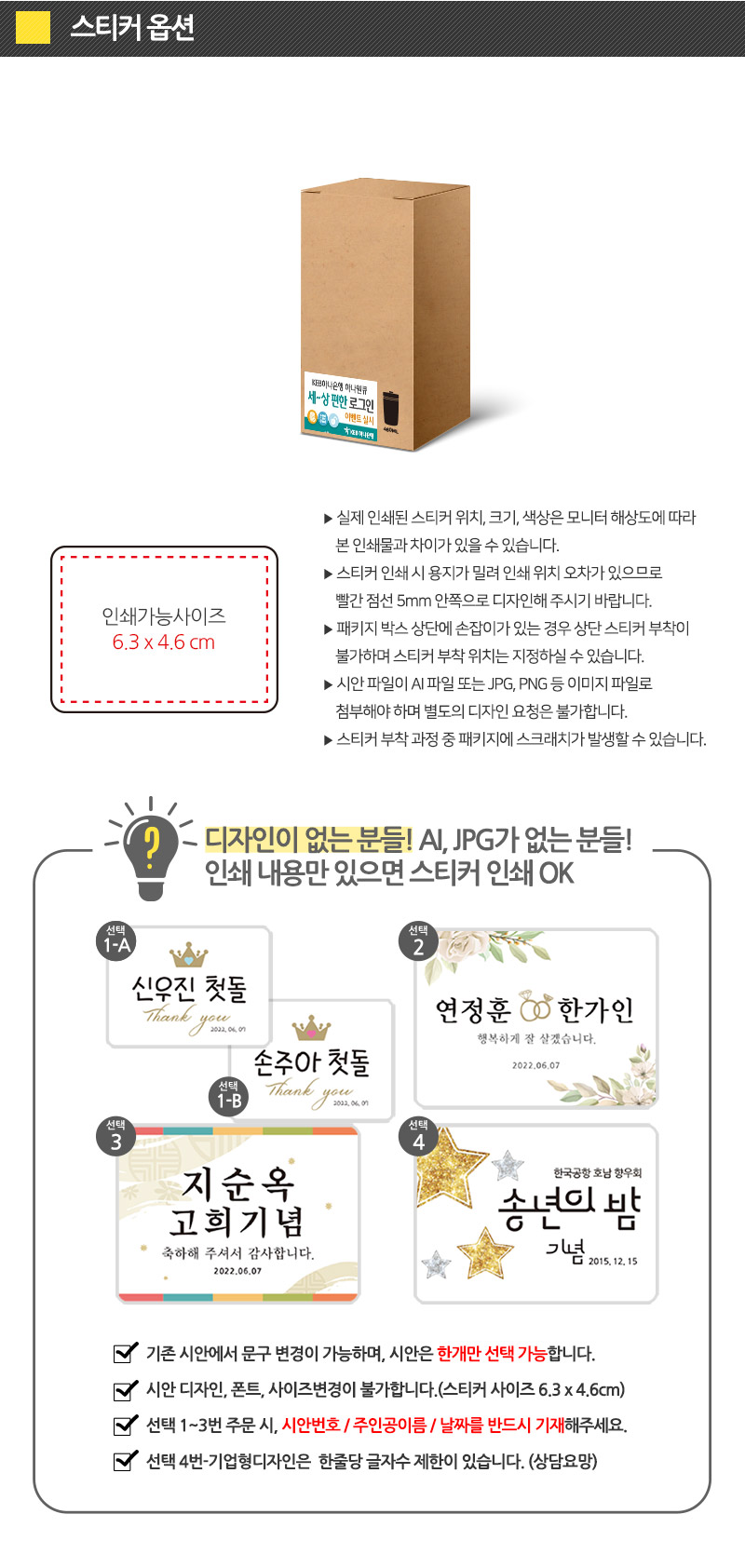 • 국내택배 배송비는 무료배송을 원칙으로 하나 제작상품에 따라 상이하게 적용될 수 있습니다.