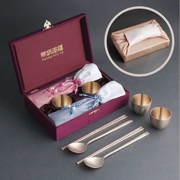 • 우리방짜유기 술잔·수저 2인세트 겹보자기
