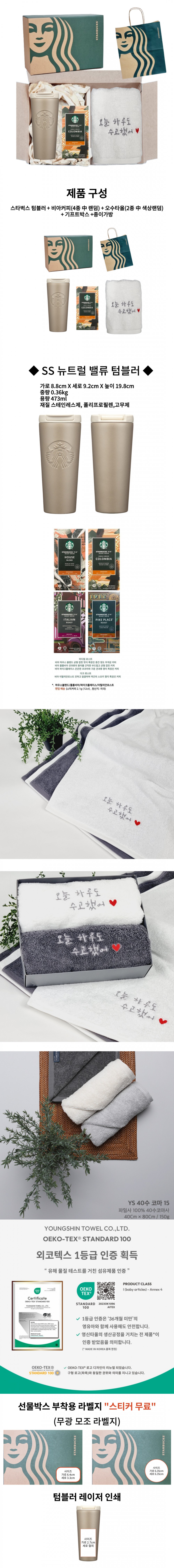 • 스타벅스 SS 뉴트럴 밸류 텀블러 + 오수 영신 타올 호텔 수건 선물세트 + 비아커피
