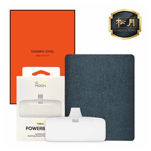• 송월 도킹 보조배터리 5000mAh 세트 (컬러행주30 타올 1매 + 도킹보조배터리 1개)